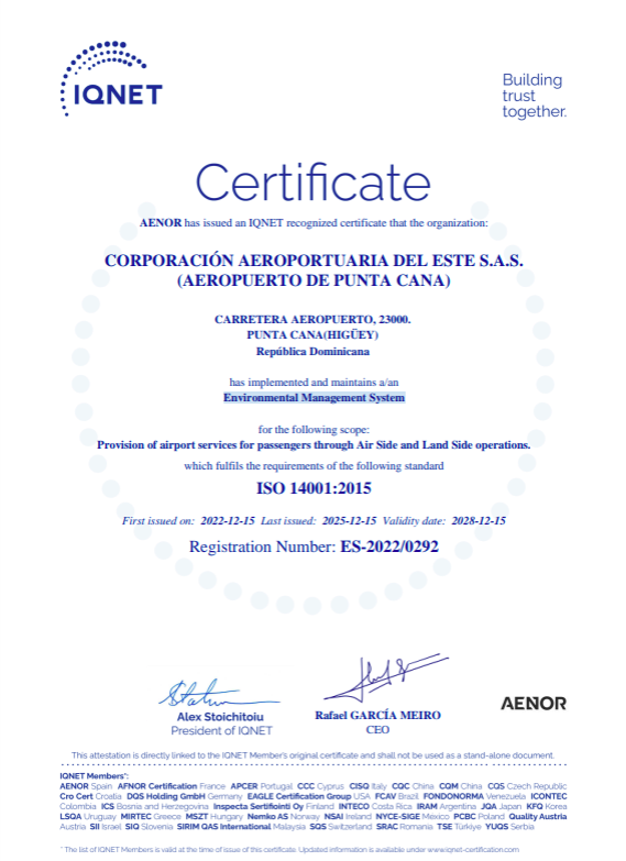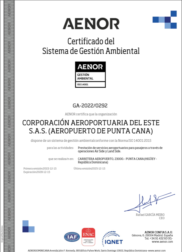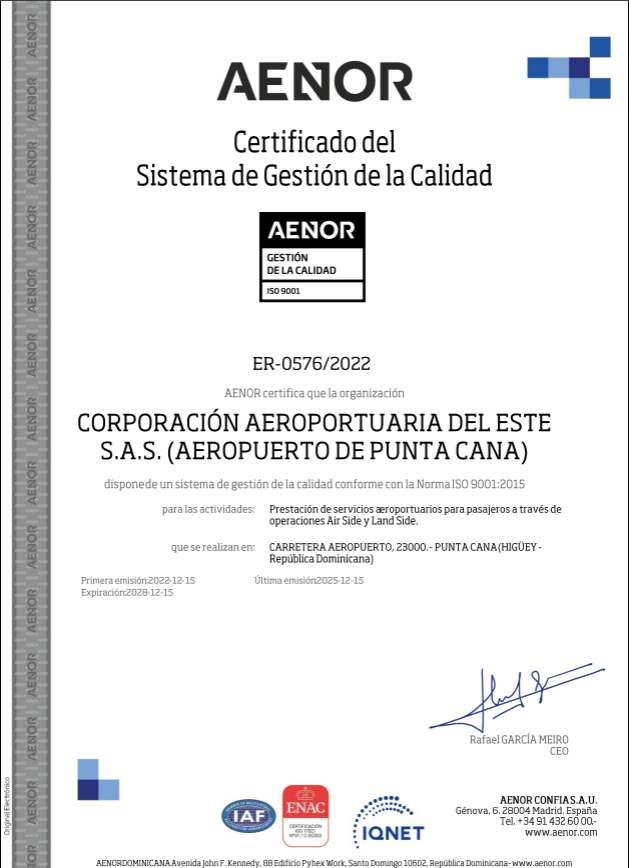 Como parte del Proceso de Certificación del Aeropuerto de Punta Cana, puede encontrar nuestra Política del Sistema Integrado de Gestión en el siguiente vídeo.